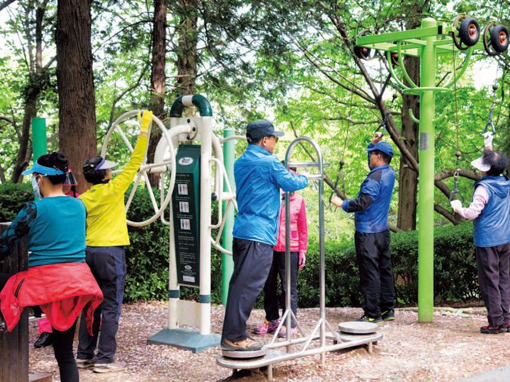 韓国人はジムや体を動かす習い事が大好き。歩いているから大丈夫! という日本人とは違い、わざわざ体を動かしに行きたい性分なので、公園にも運動器具の設備があります。