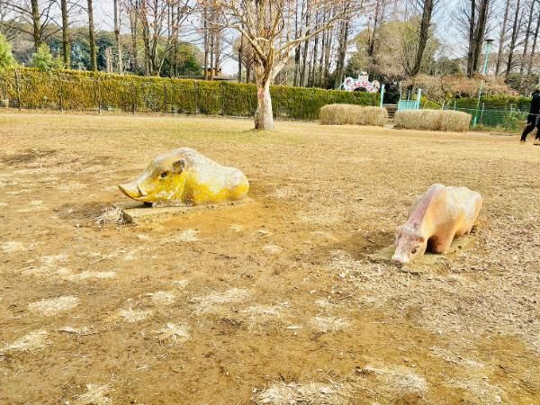 また、複合遊具のそばには、よじ登れちゃうサイズ感の動物さんたちも。