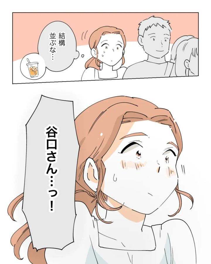 ユリちゃんに教えてもらって、飲み物を買いに来た私。フットサル会場は結構人がいて、日陰も無いので飲み物を求めてかなりの人が並んでしました。すると後ろから「谷口さんっ!」と加賀谷君に呼ばれて驚いて振り返ると。