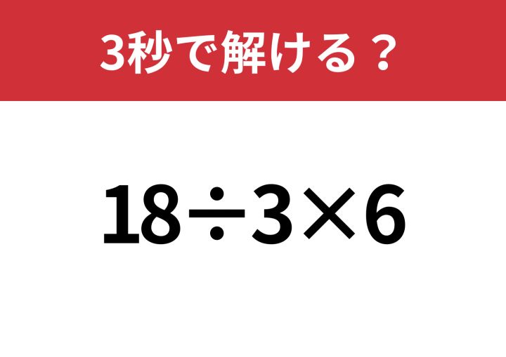 簡単そうに見えるけど、意外と難問かも!?「18÷3×6」3秒で解ける?