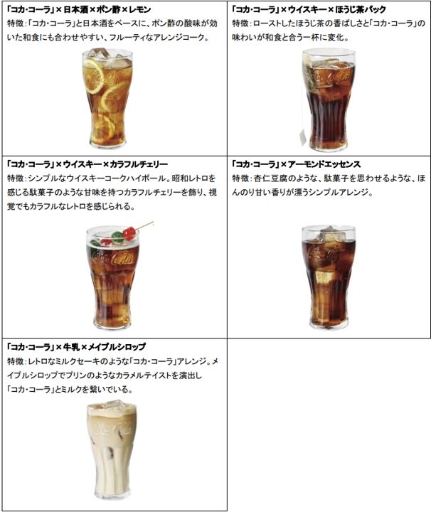 「瓶コーク横丁」の開催期間中、「渋谷横丁」の全店舗では「瓶コーク」割りのオリジナルドリンク5種類が提供されます。