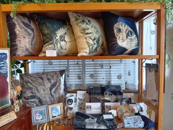 ペン画で猫のリアルな毛並みを表現する画家・山田貴裕さんのグッズも充実