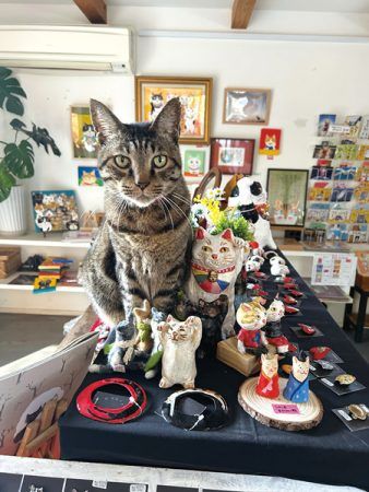週末だけ運営する、オリジナルハンドメイド猫雑貨店。 陶器、石粉粘土、絵画、ポストカード…と、さまざまな素材・タイプの招き猫に出会えます。 ハンドメイドの1点ものばかりなので、気に入ったら即購入を! 保護猫4匹も店内に自由に出入りしているので、会えたらラッキー。