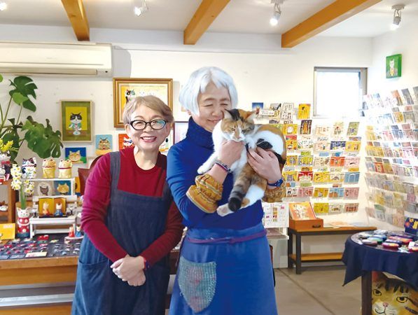「以前は7匹飼っていました。今は少ない方」と笑う増本智子さん(右)・典子さん姉妹と、人懐こい看板猫・キヨちゃん