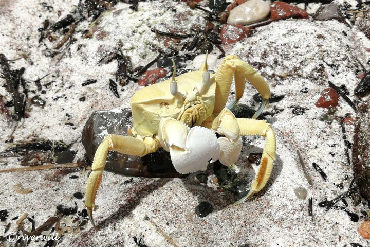 カニやロブスター、エビなどの甲殻類も300種類以上生息するソコトラ島。この愛嬌のある黄色のカニもまたソコトラ島の固有種で、ビーチに数多く生息しています。