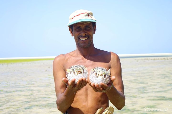 こちらは、デトワ・ラグーンの名物「洞窟おじさん」こと、アブドラさん。ラグーン一角の洞窟を代々住まいとし、海の幸を採って生活していたそうです(現在は村で暮らす奥さんと6人の子どもたちとともに村と洞窟の二重生活)。