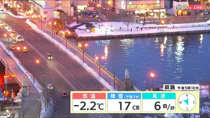 背景は20日午後5時ごろの釧路情報カメラ