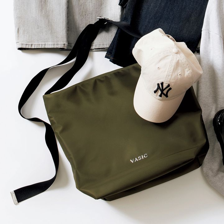 さっと拭けて、ポッケたくさんの大容量バッグも四角フォルムでかっちり。バッグ[H35×W29×D18cm]¥37,400(ヴァジック/ヴァジックジャパン)キャップ¥4,400(フォーティーセブン/OSM International)