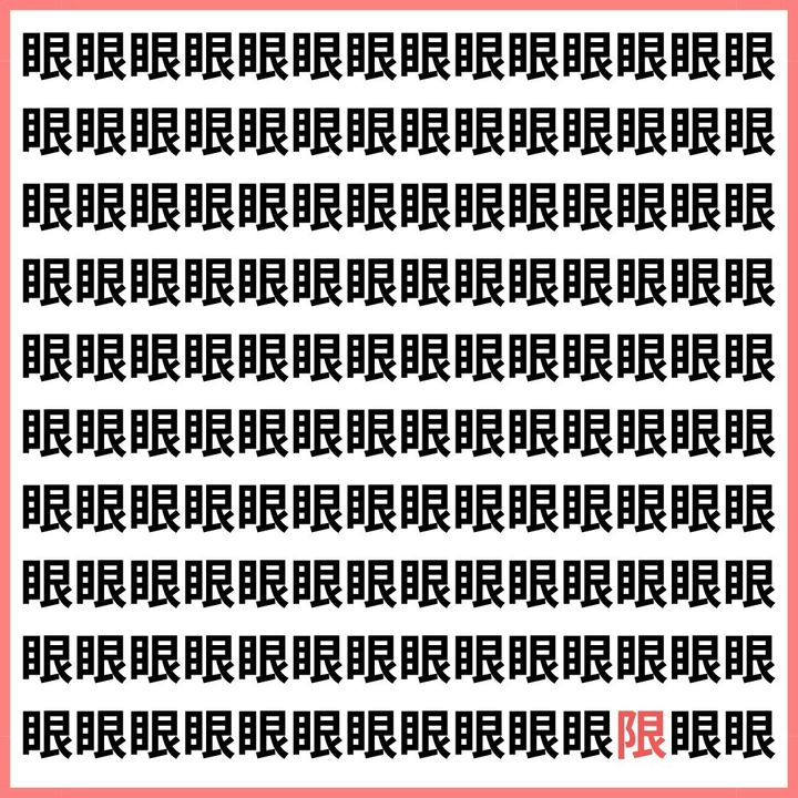 たくさんの「眼」の中に、1文字だけ違う漢字が混ざっています。