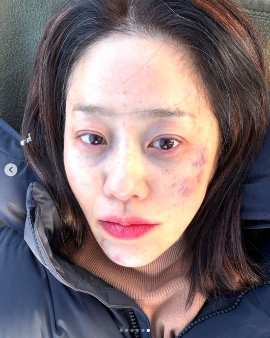 女優コ・ヒョンジョンがあざだらけの顔で近況を伝え、衝撃を与えた。