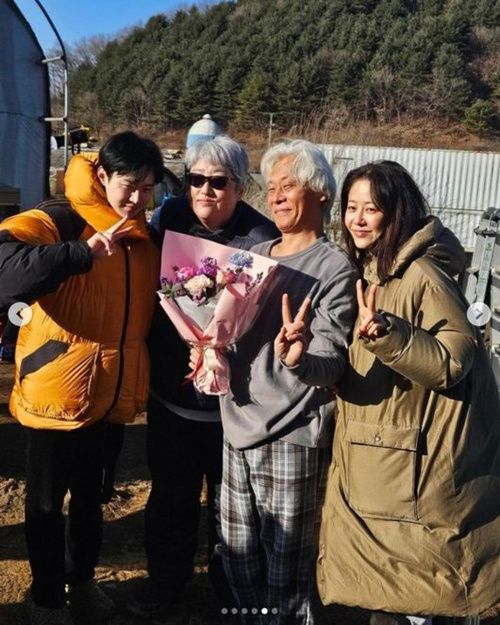 公開された写真には、新作『カマキリ』の撮影現場の様子が収められていた。ピョン・ヨンジュ監督をはじめ、チャン・ドンユンなど共演者の姿も確認できた。コ・ヒョンジョンは最後の撮影を終え、共演者やスタッフたちと挨拶を交わしていた。