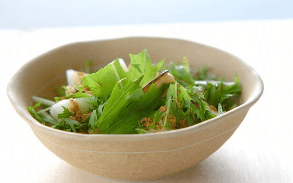 水菜は栄養バランス抜群の野菜で、サラダにするとその栄養素を効率よく摂取できます。特に、抗酸化力に優れたβ-カロテンは脂溶性なので、油が入っているドレッシングをかけると吸収率アップが期待できますよ。