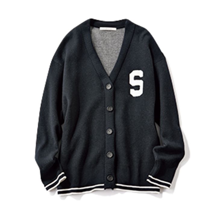 デコルテが縦に長いVあきになっているカーディガン。もっちりとした素材で体のラインを拾いにくいのも嬉しい。¥18,700(Stola.)