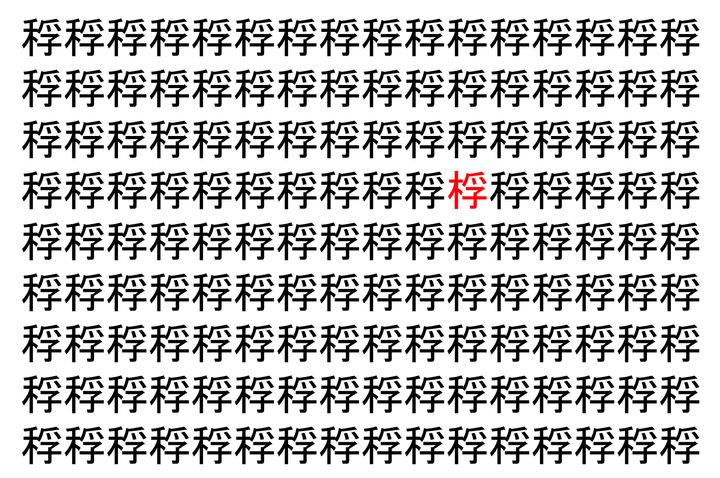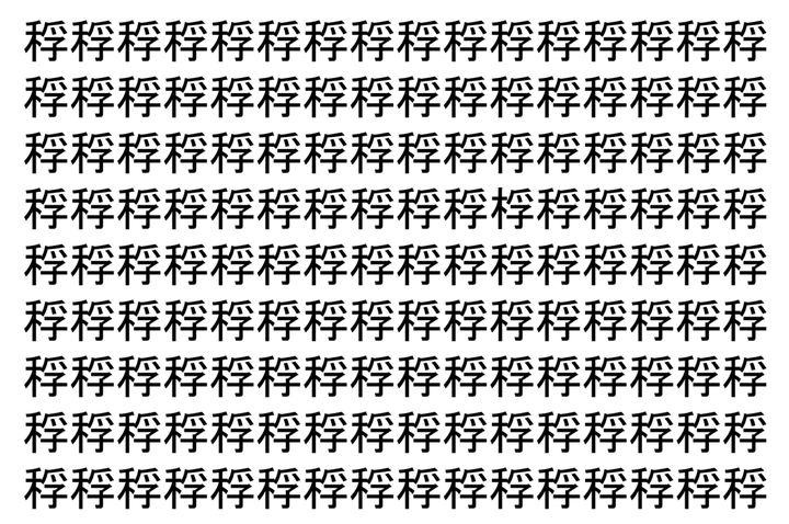 2. 【脳トレ】「稃」の中に紛れて1つ違う文字がある!?あなたは何秒で探し出せるかな??【違う文字を探せ!】
