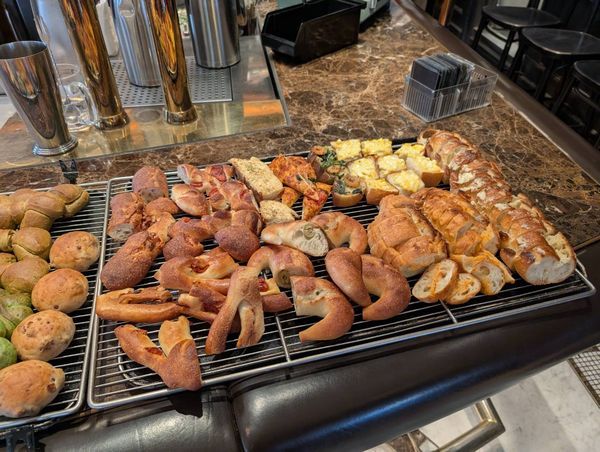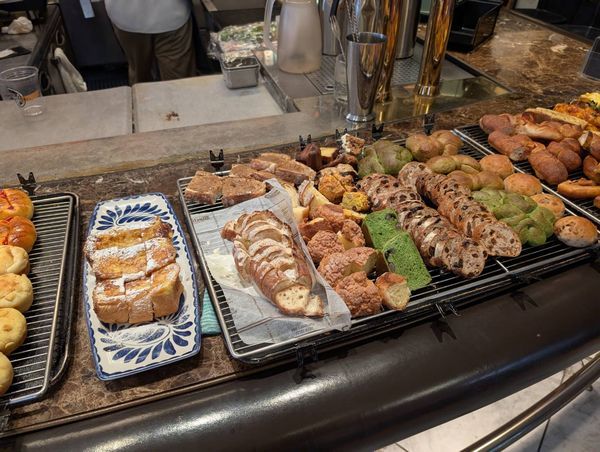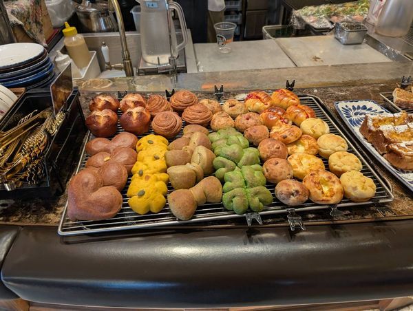 なんと!朝の時間はモーニングビュッフェ(パン食べ放題)をやっているんです。