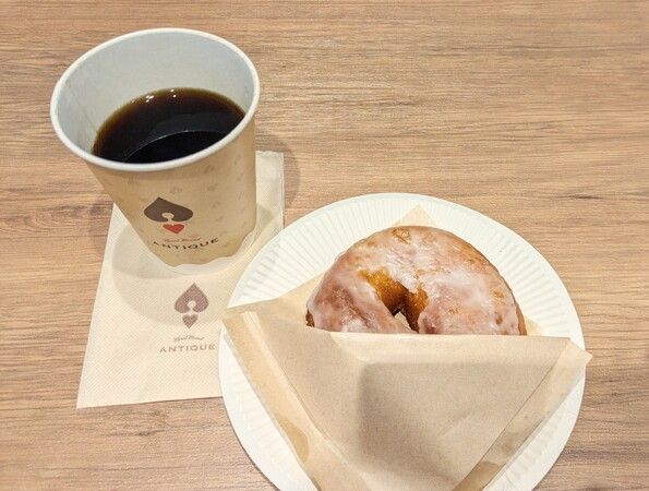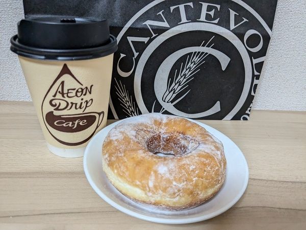 サクサク・ほろほろの生地にやさしい甘味のある味わい。くどくなく、思ったよりも軽めのドーナツです。カンテボーレに併設されているイートインで飲めるコーヒーとよく合います。テイクアウトも可能。
