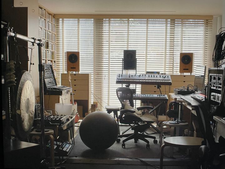 机の上に広げられた楽譜や使用していた機材、配置された椅子など、彼の創作の息遣いを感じることができます。