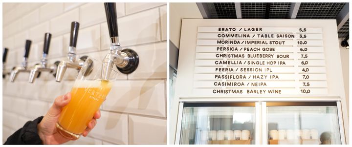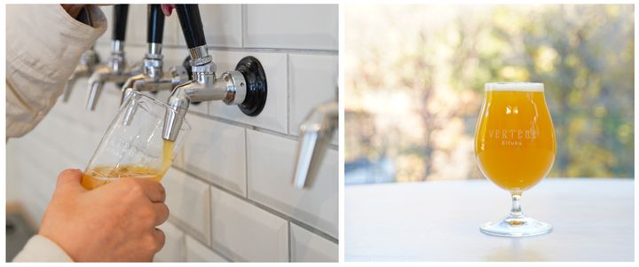 店内には、VERTEREのビールが常時10種類ほど並ぶ。定番のPale AleやIPAに加え、季節限定のビールやここでしか飲めない特別な銘柄が提供されることも。訪れるたびに新しい一杯と出会えるのが嬉しいポイントだ。