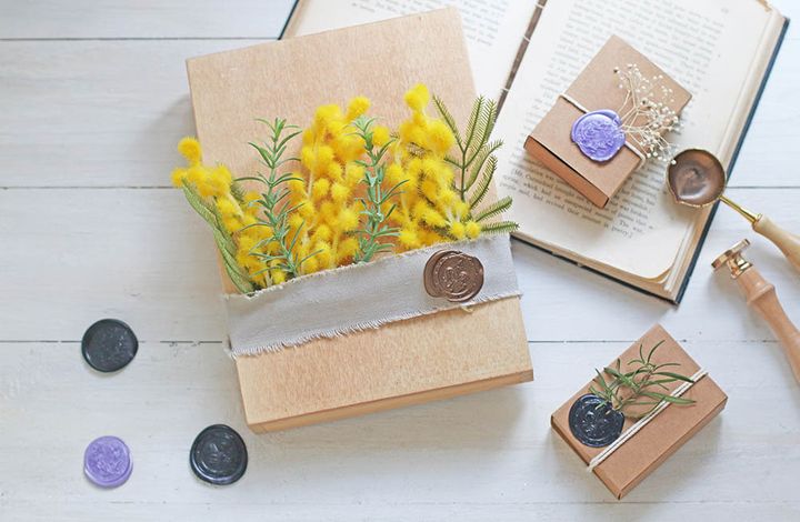 シーリングスタンプだけでもアクセントになり、また花を添えることでおしゃれ度が上がって華やかになりますね。