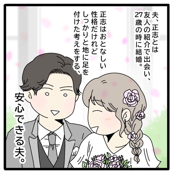 夫正志さんと友人の紹介で出会い27歳で結婚した理恵さん、正志さんはおとなしい性格でしたが、しっかりと地に足をつけた考え方をする安心できる男性でした。