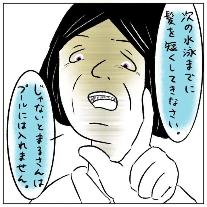するとみんなの前で「次の水泳までに髪を短くしてきなさい。じゃないとまるさんはプールに入れません。」と性根先生は言いました。