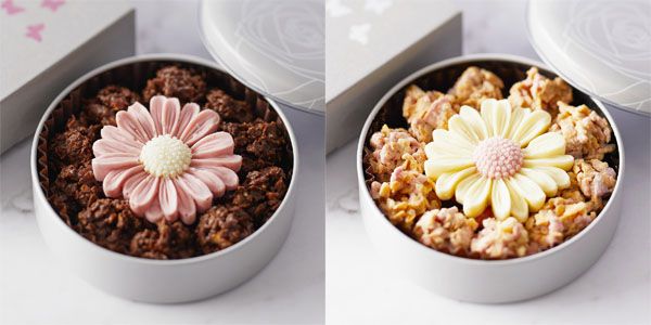 フランス産の素材を使用した、濃厚で味わい深いバラの形のチョコレートは華やかでパッと目を引くかわいらしさ。チョコレートとラングドシャの相性は抜群で、とろける2つの食感が楽しめます。