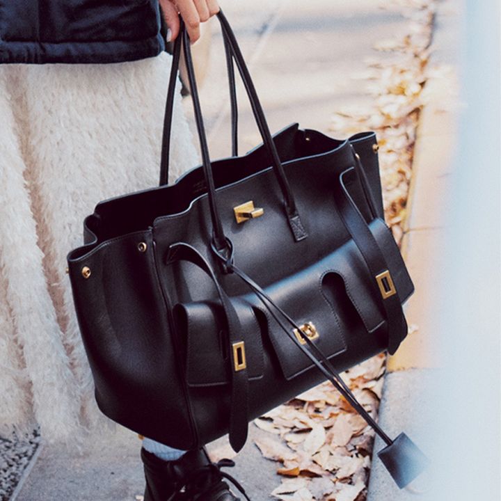【バレンシアガ】の辛口バッグが「甘スカート」の洒落見えに効果絶大!