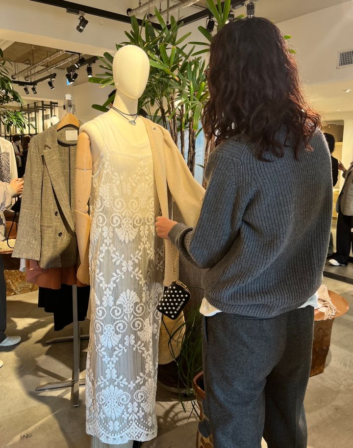 会場となった青山店には、参考にしたいスタイリングが随所に! このレースドレスもすっごく好みでした♡