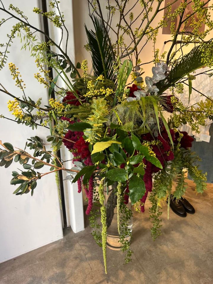 春を通り越して夏を感じた華やかなフラワーアートがお出迎え