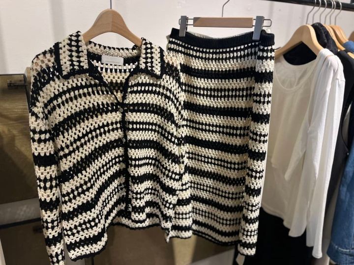 夏休みは南の島に行くことが多い筆者。水着の上にサラリと羽織れるワンピースは何枚か持っているのですが、ちょっと変わり種のアイテムも欲しかったんです。こちらのクロシェ編みのセットアップはブラック×ホワイトのバイカラーもモダンなので、ほっこりせず意外とモードに着こなせそう。ちなみにスカートは裏地が付属するので街でもはけますし、デニムとのレイヤードしてもおしゃれに仕上がるはず!