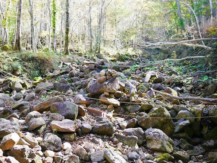 いきなりガレ場…石や岩などが積み重なり、歩きづらい道でした。準備運動をしておいてよかった!