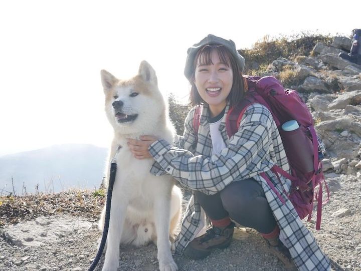 ワンちゃんが山頂に!飼い主さんとよく一緒に登っているそうですよ。