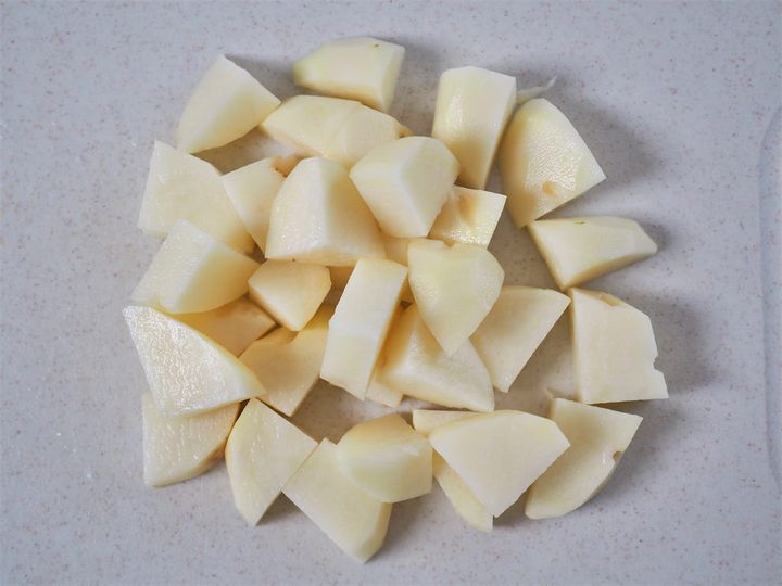 1. じゃがいもの皮や芽を取り除き、いちょう切りにする。