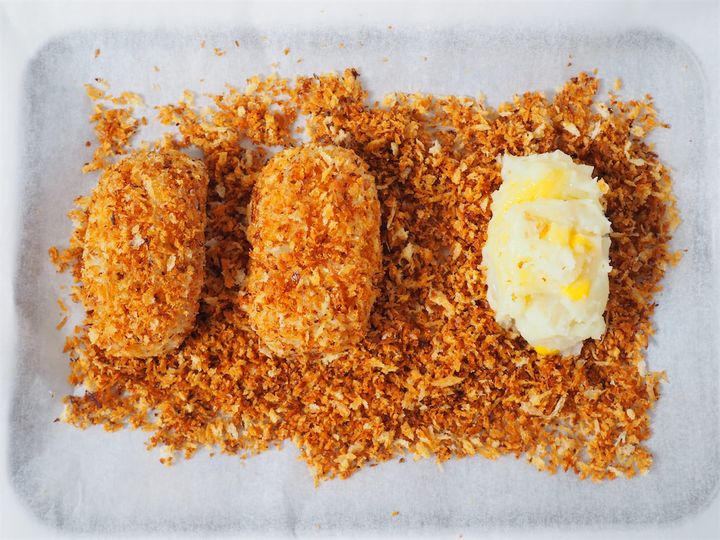 【このコロッケ、揚げずに出来ました】タネに「炒ったパン粉」を纏わせるだけ!?食べてみると…コロッケだ!!