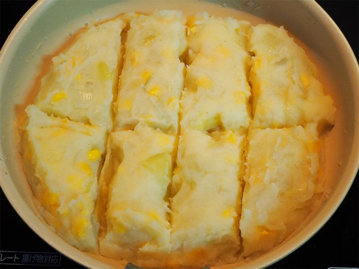 焦げてしまったらと若干水分が残った状態でつぶすと、少しやわらかいタネになったのでホクホク感を出したい方は出来る限り水分を飛ばしてみてください。