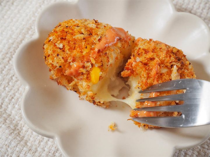 見た目はもう揚げたコロッケそのもの!出来上がった瞬間、少し笑ってしまいました。食べてみると、サクッと衣になめらかなじゃがいも。味付けもほとんどしていませんが、バターのコクと茹でる際の塩で、しっかりと味がキマっています。コーンのシャキッとした食感と甘み、所々でとろりとろけるチーズがアクセントになって、さらに完成度をあげているんです。ふじたさんによると、食べる時に電子レンジ600Wで30秒ほど温めると中のチーズがとろけてよりおいしくなるとのこと♪