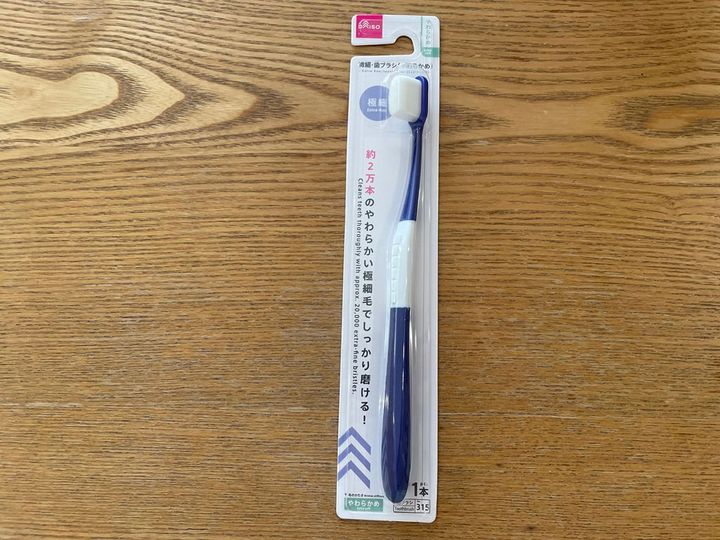 超極細タイプの歯ブラシは薬局などで見かけることがありますが、安くても1本300円ほどといったイメージですよね。それがダイソーの「微細歯ブラシ(やわらかめ)」は110円で購入できるので、気軽に試せるのがよさそうです。