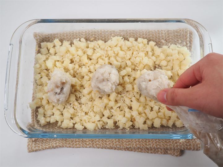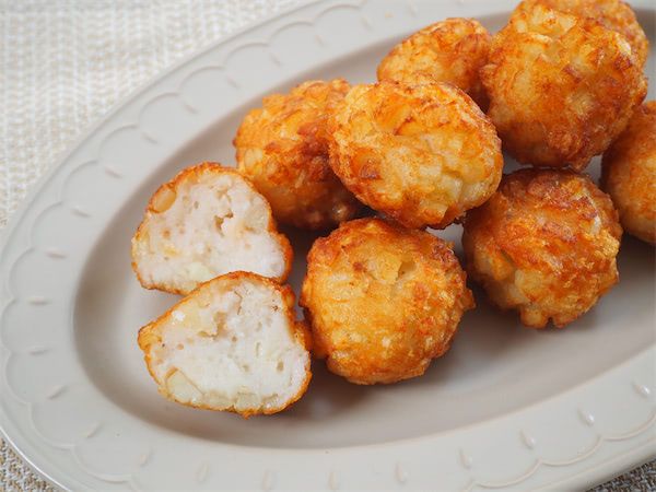 コロコロと可愛らしい見た目も魅力。じゃがいもを衣に使うなんて、なかなか思い浮かばない面白いアイデアですよね。