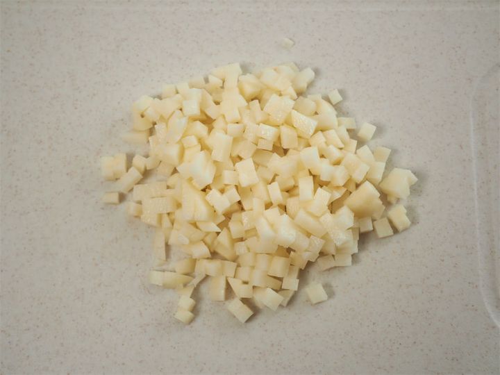 4. じゃがいもの皮、芽を取り除き、3mm角ほどに切る。