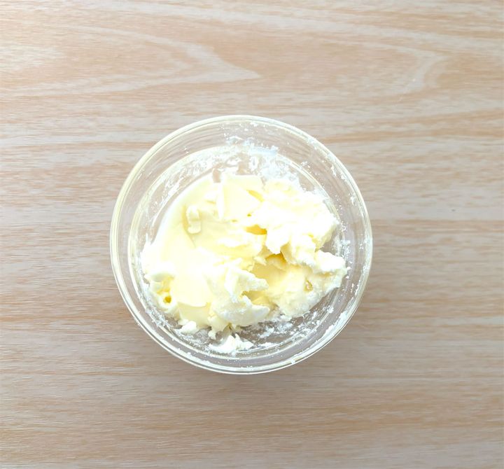 バターは室温に戻して、薄力粉を加えて混ぜておきます。