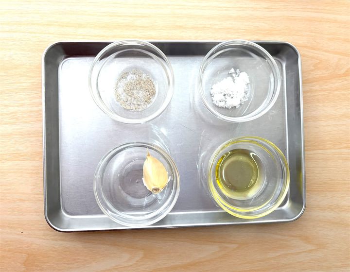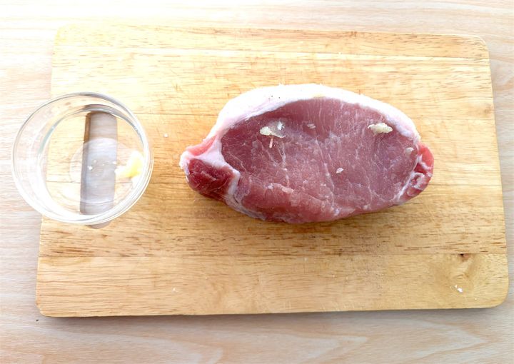 そのあと、両面に塩とこしょう、すりおろしたにんにくをかけて、よく馴染ませます。