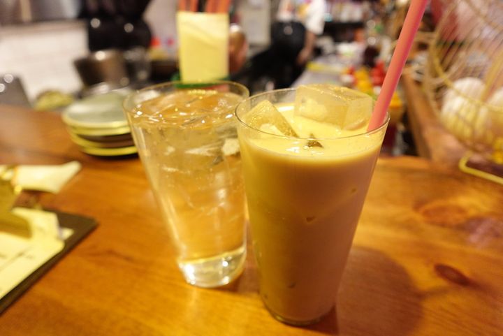 私の母はお気に入りのジンジャースパイスサワーを4杯注文してました。