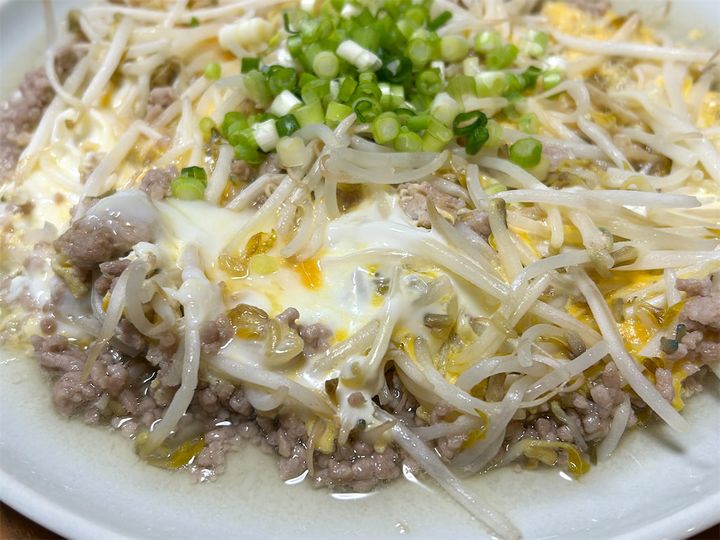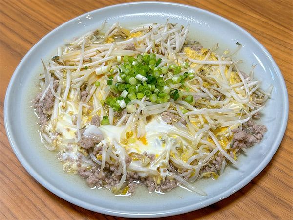 シャキシャキもやしに豚ミンチの旨味とトロトロの卵がたまらん!