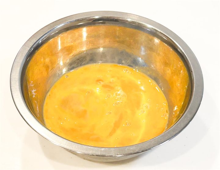 1. ボウルに卵2個を割り入れ、溶きほぐします。