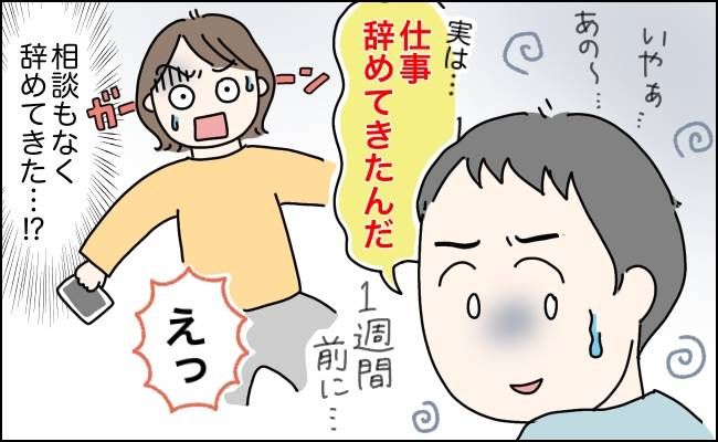 「実は……。仕事を辞めてきたんだ。1週間くらい前に……」と。たしかにストレスの多い職場だとはこぼしていたものの、私に相談もしないで仕事を辞めるなんてショックでした。しかし、妊娠しているからかとてもポジティブな気分だった私は「そうだったのね。少し休んで、仕事はまた探せばいいじゃない。子どものために一緒に頑張ろう!」と伝えました。