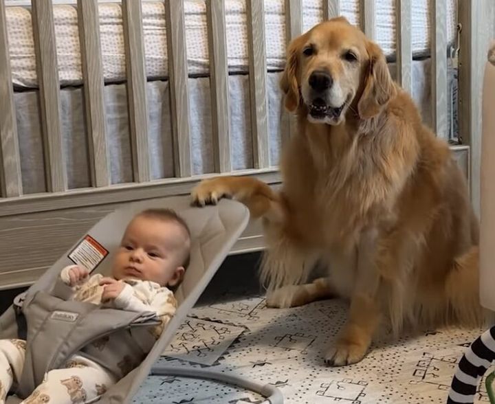 まるで優しいお兄ちゃん! 赤ちゃんのために大奮闘する犬さん