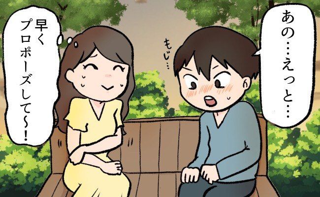 これは私が夫からプロポーズをされたときのお話です。何回かの食事やデートを経て、彼からプロポーズされました。季節は8月。ムシムシとした中で公園に並んで座っていたのですが、私はあることを必死に我慢していて……。読者が経験した「プロポーズ時の衝撃エピソード」を紹介します。
