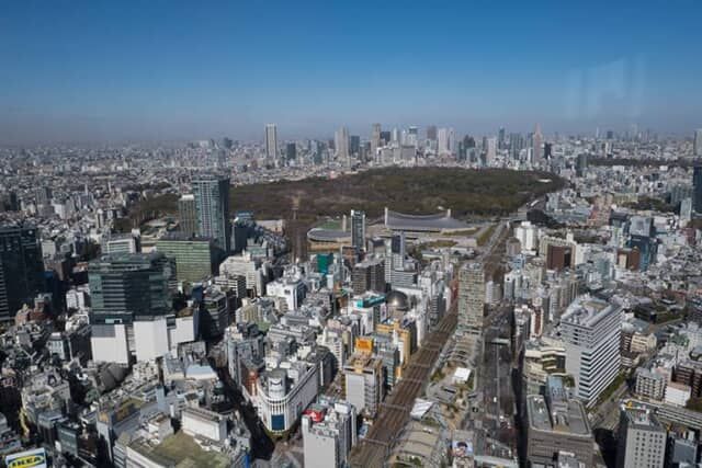 ▲絵と共にSHIBUYA SKY 46階からの眺めを満喫