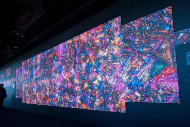 大きなLEDディスプレーでには、展示会のために制作された作品を動画放映しています。