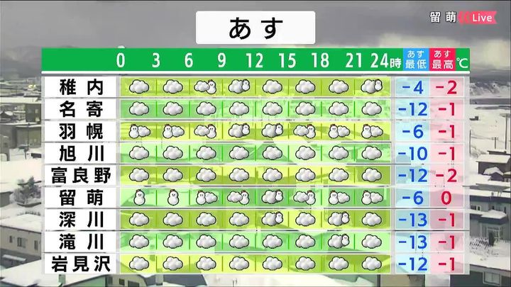 背景は21日午後5時ごろの留萌情報カメラ